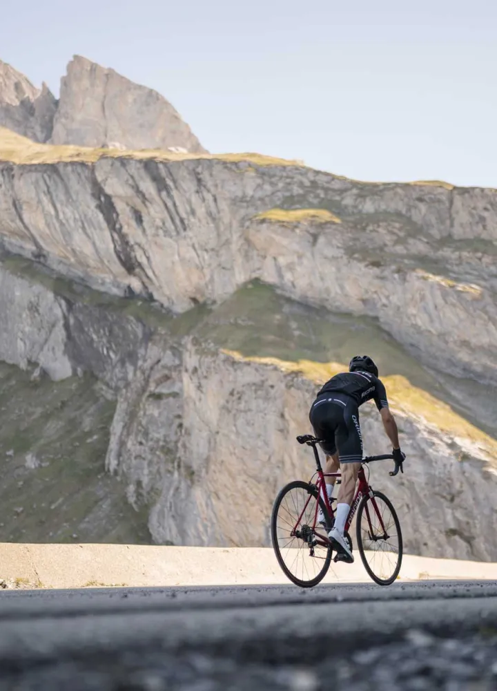 " Beaufortain ist gut für Gravel geeignet, da es ein dynamisches landwirtschaftliches Gebiet ist und es viele Pisten gibt, die zu den Almen führen, die ideal zum Gravel fahren sind... Es gibt auch vom Winter beschädigte Straßen, auf denen es bequemer ist, mit einem Gravelbike als mit einem Straßenrad zu fahren und sich so nicht um Schlaglöcher, Kieselsteine... kümmern zu müssen." Florent S.