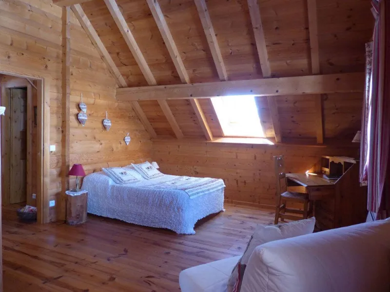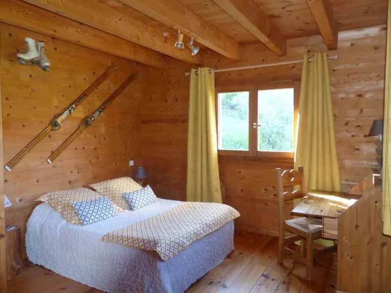 In a larchwood chalet, five cosy nests await you for one night or longer stay, birds of passage. Table d'hôte dinners made from local produce, for rediscovering forgotten flavours. Nature lovers Patricia & Patrick will do their best to offer you an unforgettable stay.5 Bdrms in mountain chalet. Garden level, big lounge, sitting rm, fireplace, dining rm (36 m²). Upper level: 1 family rm (1 dbl bed, 1 sgl bed). 1 bdrm (1 dbl bed), 1 bdrm (2 sgl beds). 2nd upper level: 2 family rms (1 dbl bed, 2 sgl beds). Each rm with washrm WC. Wifi. Terrace, grounds, parking. Motorbike garage. Animal/request.