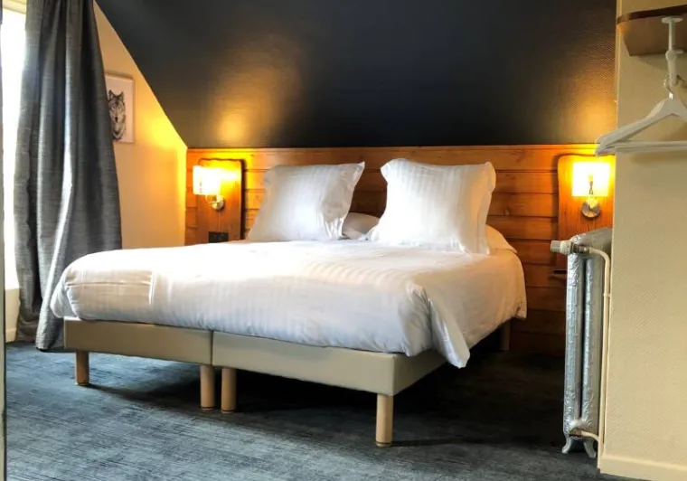Notre hôtel, qui date des années 30, n’est pas équipé pour les personnes à mobilité réduite en fauteuil roulant qui sont plus que bienvenues dans nos espaces conviviaux intérieurs et extérieurs de plein-pied comme notre salle de restaurant, notre lounge et notre salon. Nous disposons également d’une chambre équipée au premier étage accessible via notre escalier.