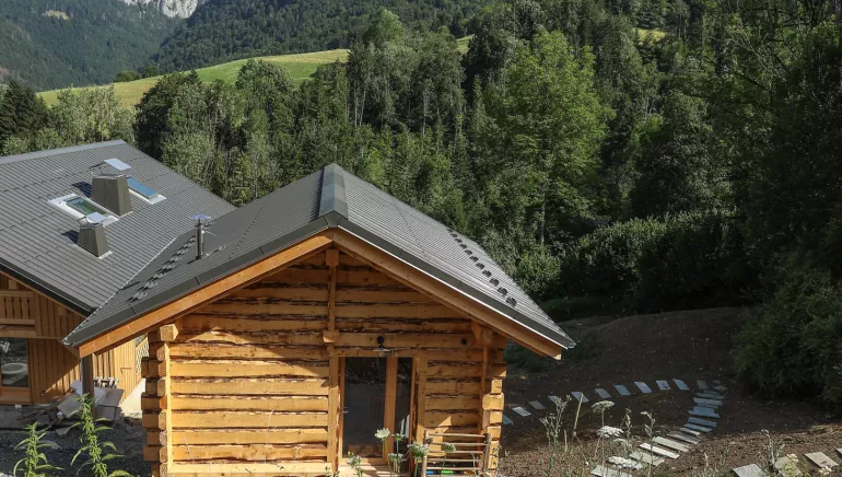 Dès sa construction en bois de pays, une famille de rougequeues noirs a élu domicile entre ses chevrons. Le nom de notre petit grenier était tout trouvé ! Un lieu magique, à l’esprit cabane joyeux et confortable.Bois de pays travaillé localement, enduits chaux et pigments naturels, entre terre et bois, notre écomazot s’inscrit dans l’architecture traditionnelle du paysage pour vous immerger dans les montagnes de Glières-Val-de-Borne. Osez aussi y utiliser nos low-techs (marmite norvégienne, rocket stove pour cuisine extérieure, toilettes sèches…), pour ralentir et à redécouvrir le luxe de prendre le temps de vivre en connexion plus durable avec nos écosystèmes.