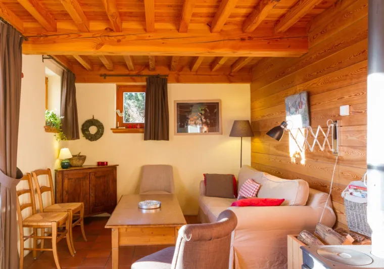 This two-room cottage is fully furnished. Its living room with sofa bed (2 persons) is pleasantly decorated and has a dining area with equipped kitchen. There is also a TV. The room has two beds and is connected to the bathroom with toilet and shower.Its private terrace and garden will offer you all day sun as shade thanks to its Southwest/ West orientation. In addition, the terrace offers a view of the Grand Rochail (3.022 m) and the Prégentil (1.938 m). The barbecue will bring you even more comfort (not in winter).