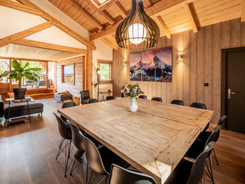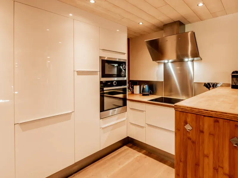 14-person duplex 180m². 5 bedrooms, 2 balconies. South-facing, views over the entire valley.Fully-equipped kitchen opening onto living room: fridge, oven, microwave, hood, ceramic hob, toaster, electric kettle, blender, juicer, Nespresso and filter coffee machines, dishwasher, washing machine and dryer. Two raclette and two fondue machines.