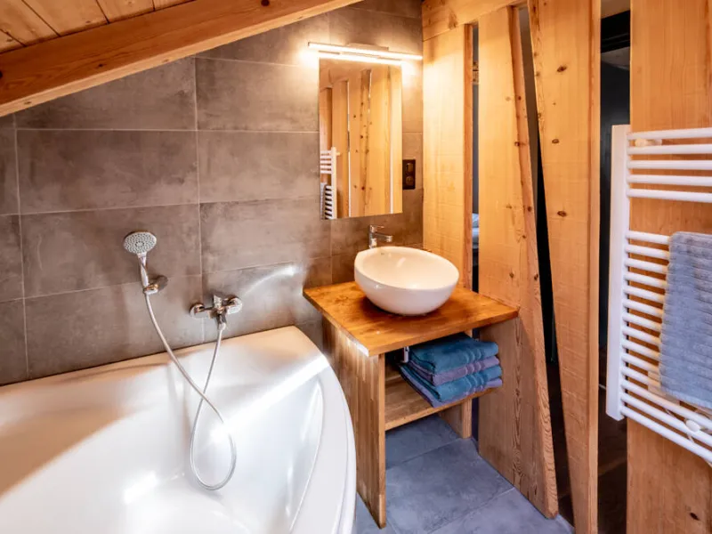 2 bathrooms with bathtub and 3 bathrooms with walk-in shower.