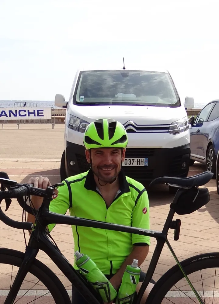 Ich bin 45 Jahre alt und Ingenieur. Ursprünglich war ich Mountainbiker, habe mich aber nach und nach dem Straßenradsport zugewandt, um mein Wintertraining zu ergänzen. Es ist eine Leidenschaft geworden, ein Mittel, um Orte und Regionen zu entdecken, die ich nicht kenne, aber auch um Pässe zu besteigen, insbesondere in den Pyrenäen, die mir besonders am Herzen liegen.